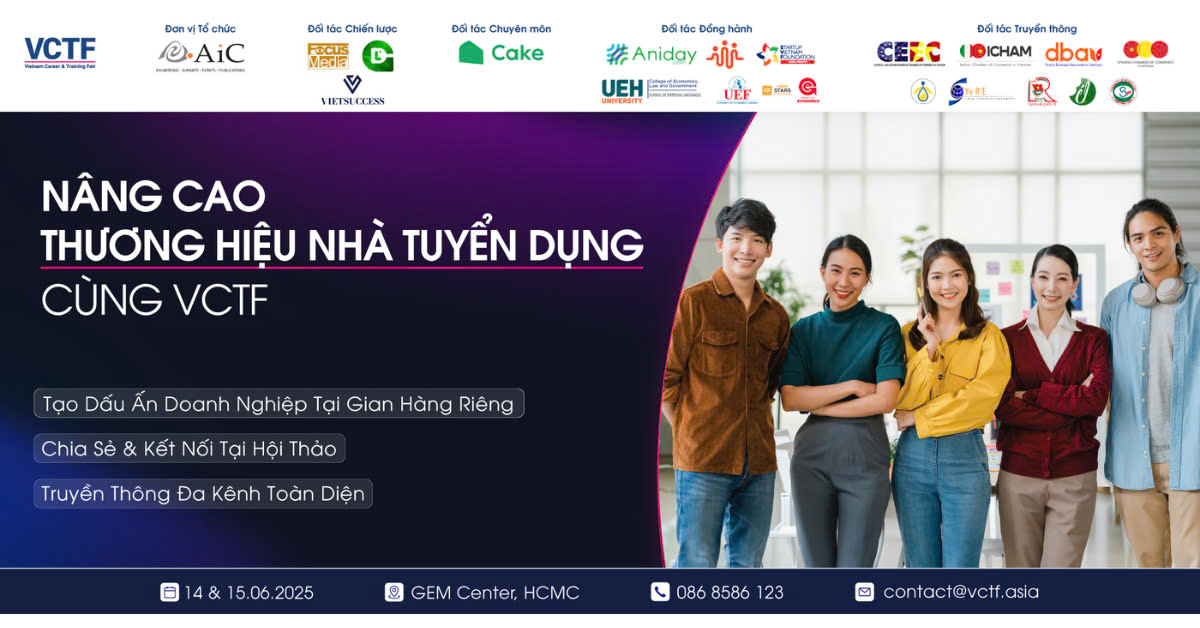 Trong bối cảnh thị trường lao động cạnh tranh, thương hiệu nhà tuyển dụng không chỉ là lợi thế mà còn là yếu tố quyết định giúp doanh nghiệp thu hút và giữ chân nhân tài. Vietnam Career & Training Fair (VCTF) 2025 là cơ hội không thể bỏ lỡ để doanh nghiệp kết nối trực tiếp với ứng viên chất lượng, mở rộng mạng lưới nhân sự và gia tăng độ nhận diện thương hiệu trên thị trường.